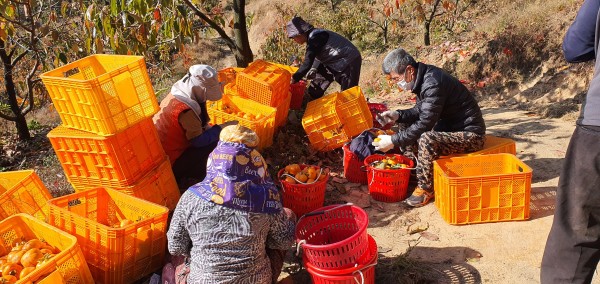 수확 중인 준시 감
